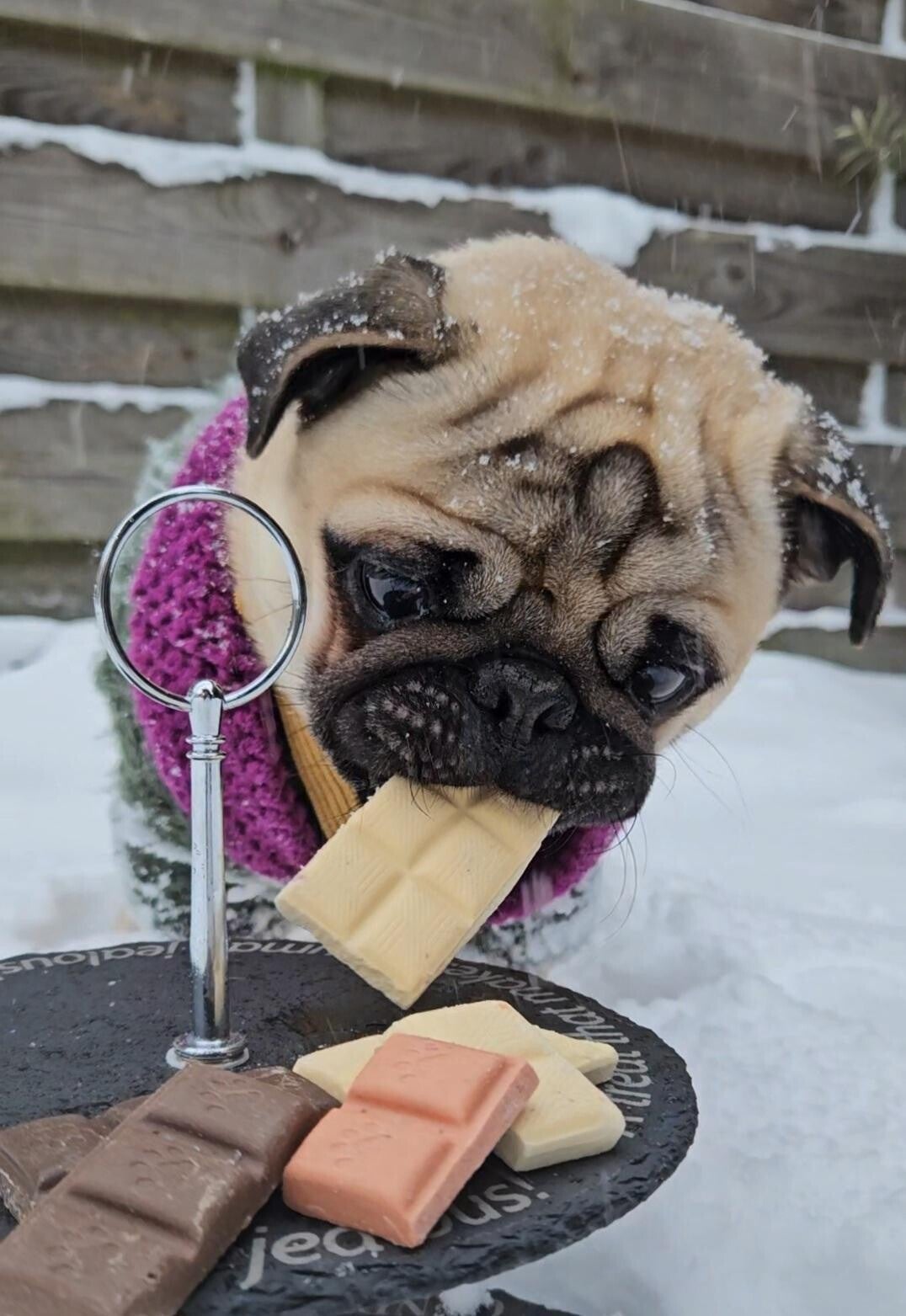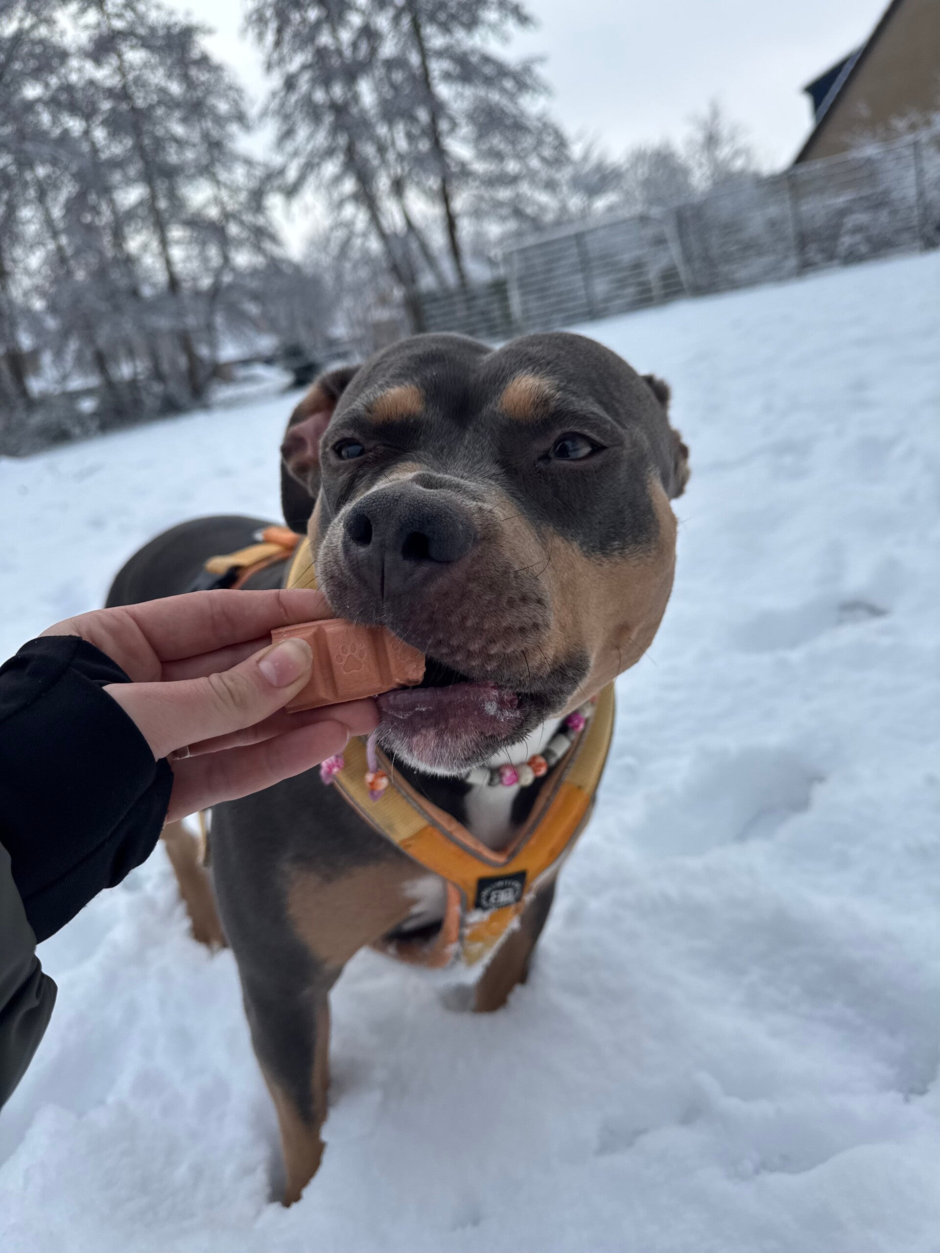 De chcolade wordt met CA. 100 gram bezorgd bij jou booboo 😍